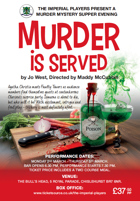 The Imperial Players are pleased to announce their next production “Murder is Served” by Jo West, directed by Maddy McCubbin.